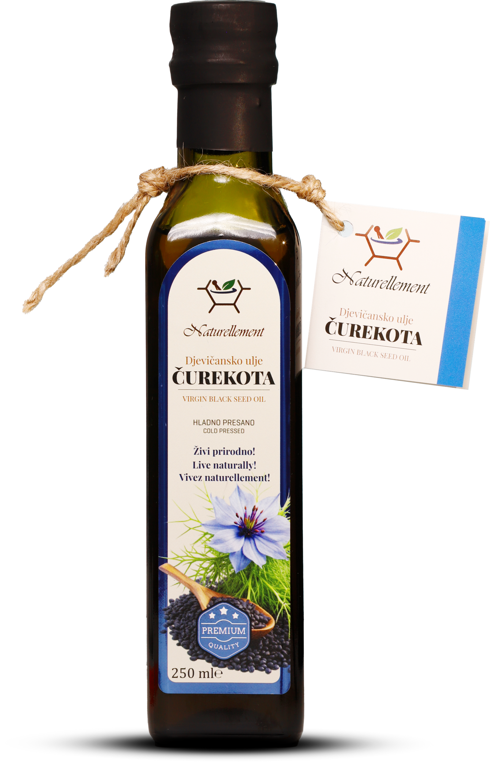 🌿 Ulje je dobijeno isključivo mehaničkim putem od svježih sjemenki bez upotrebe topline, hemijskih otapala ili drugih dodataka. Sadrži timokinon. Unos djevičanskog ulja ćurekota na dnevnoj bazi preporučuje se u iznosu od jedne kašike (15 ml) po 50 kg tjelesne težine.